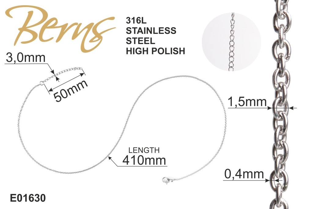 LÁNC SZEMES 0,4*41+4CM SS
