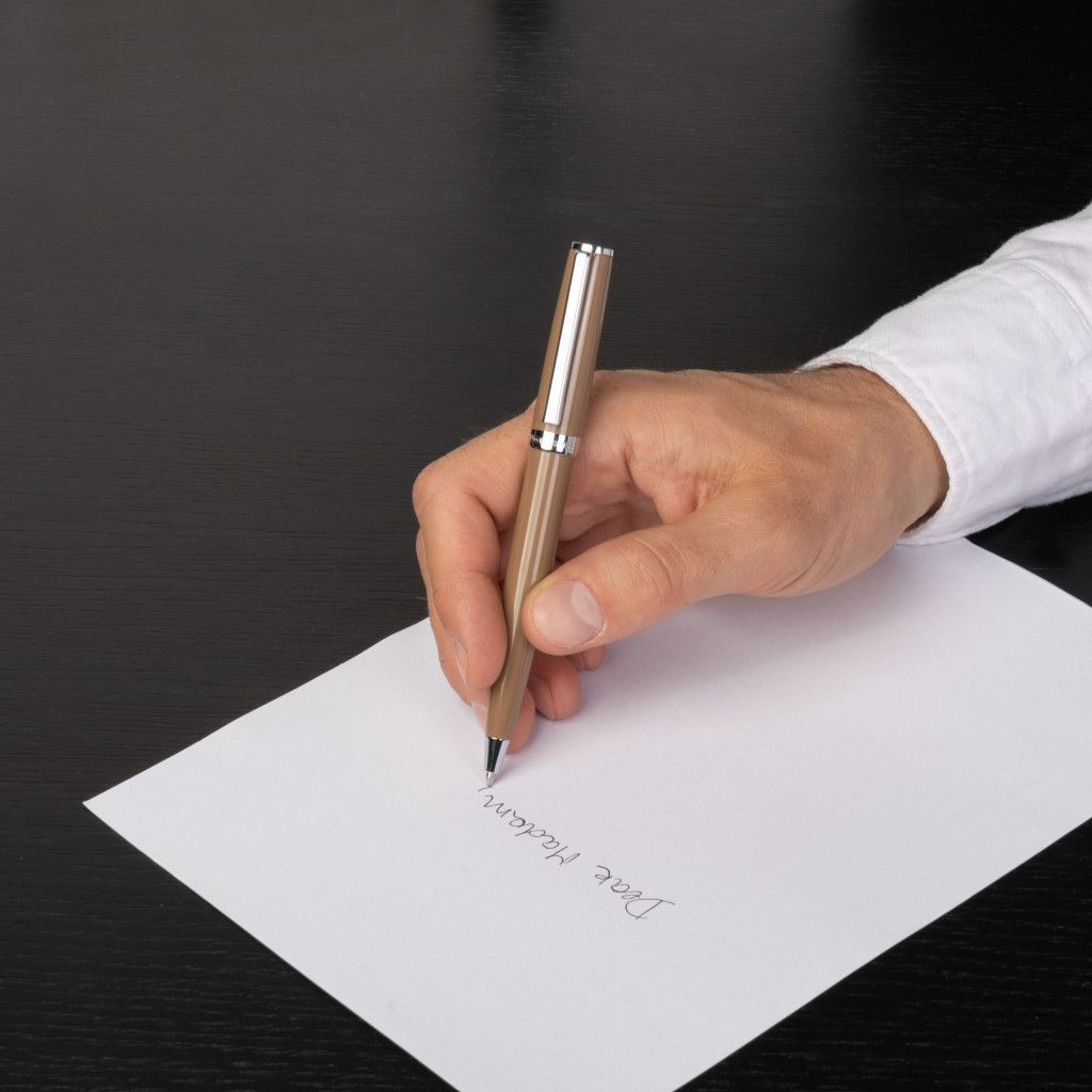 A HUGO BOSS Gear Icon golyóstoll az időtlen elegancia méltó védjegye most egy letisztultabb, modernebb, fényes lakkozott külsővel hódit. A minimalista dizájn, a kifinomult sziluett, a lágy színek igazi klasszikus megjelenésű íróeszközzé teszik, míg számos vidám új színe igazán friss, élénk dinamizmusról árulkodik. A toll camel színben kifinomult és időtálló eleganciát sugároz, tökéletes választás a klasszikus, mégis modern megjelenésért.