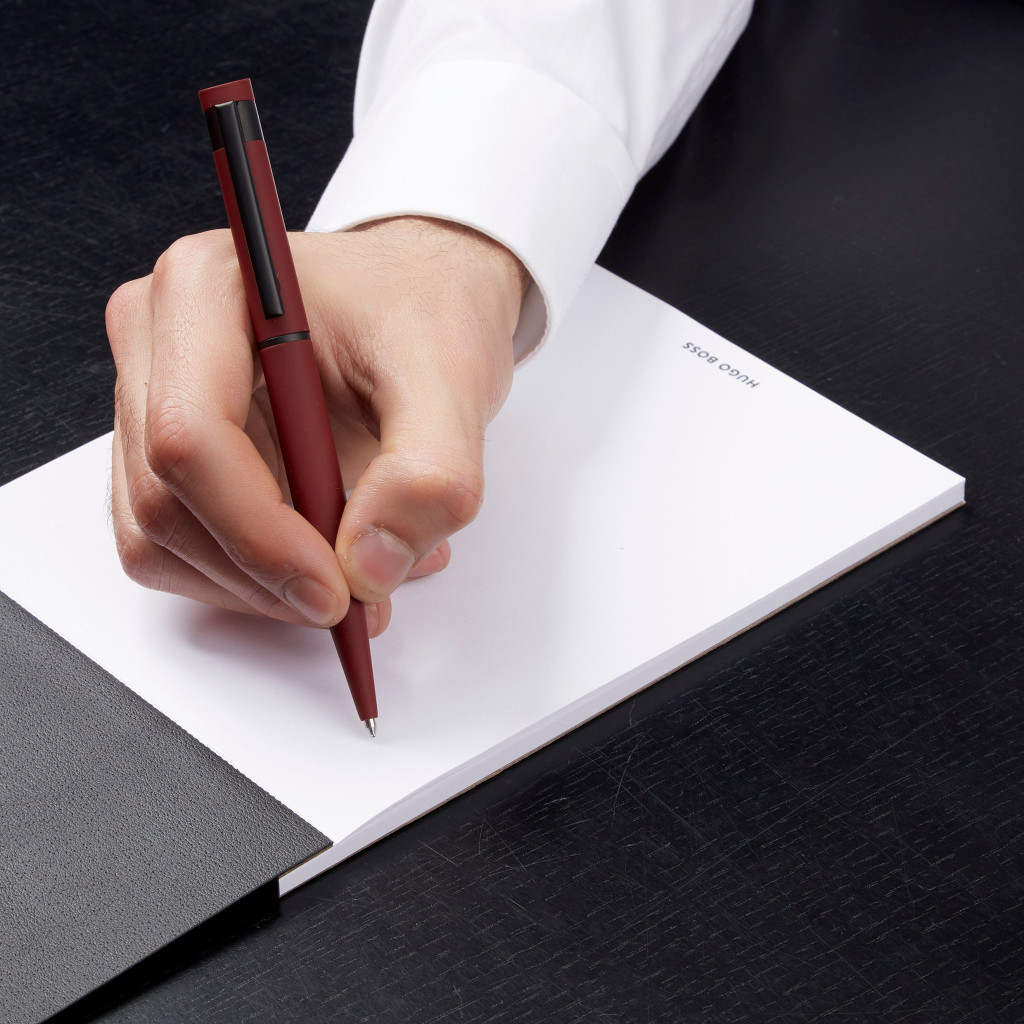 A HUGO BOSS Loop kollekció írószereinek dinamikus és modern formavilága a letisztult dizájnt ötvözi a kényelmes használattal, így biztosítva a tökéletes írásélményt. Az élénk színek vibráló palettája látványosan egészül ki a mattfekete elemekkel, míg a toll alsó részén finoman gravírozott, nagy méretű HUGO BOSS logó teszi igazán kifinomulttá. Mélyvörös színben.